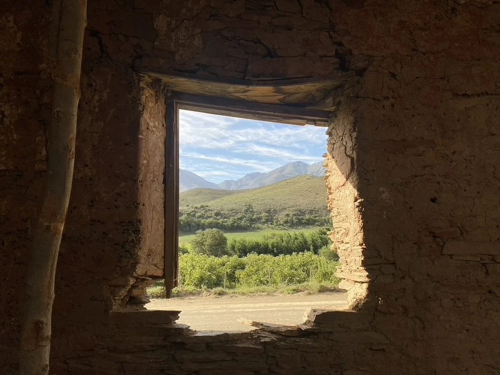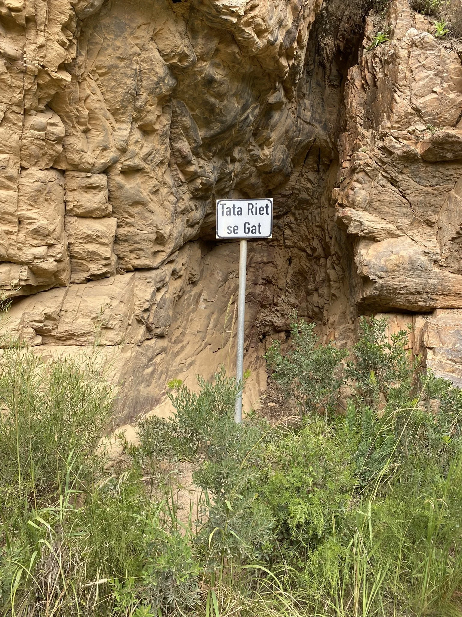 The afternoon is peaceful on the Kammanassie Trail, passing small farms and hamlets, with the Swartberg and Outeniqua Mountains on either side of me. Painted large on a farmer’s outbuilding: